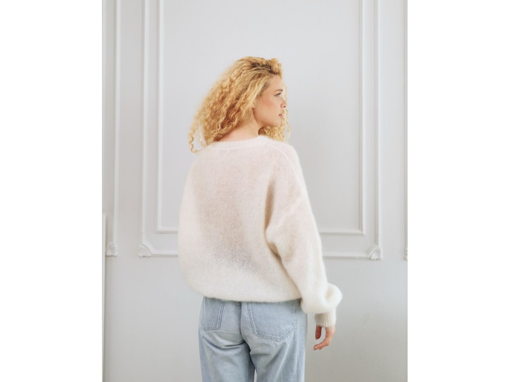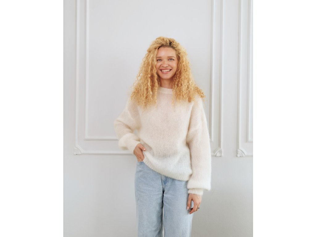 Nadýchaný svetr z jemného kid mohéru s kulatým výstřihem a volnějším střihem. Díky lehké, ale hřejivé pletenině působí vzdušně a elegantně, přitom poskytuje příjemné teplo. Měkká textura a minimalistický design z něj dělají univerzální kousek pro každodenní nošení i speciální příležitosti.