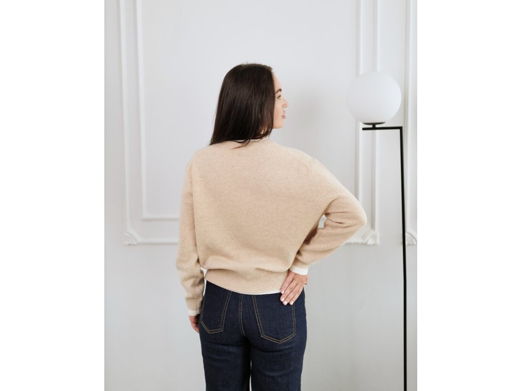Lehký pletený svetr z čisté vlny s kulatým výstřihem a dlouhými rukávy.