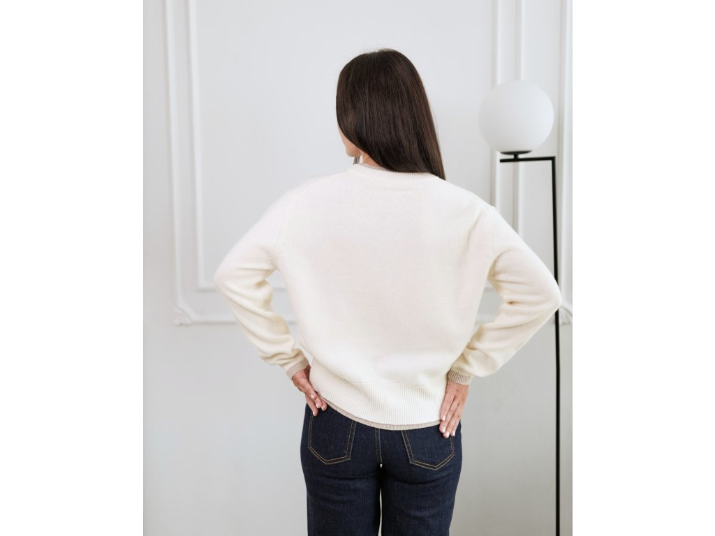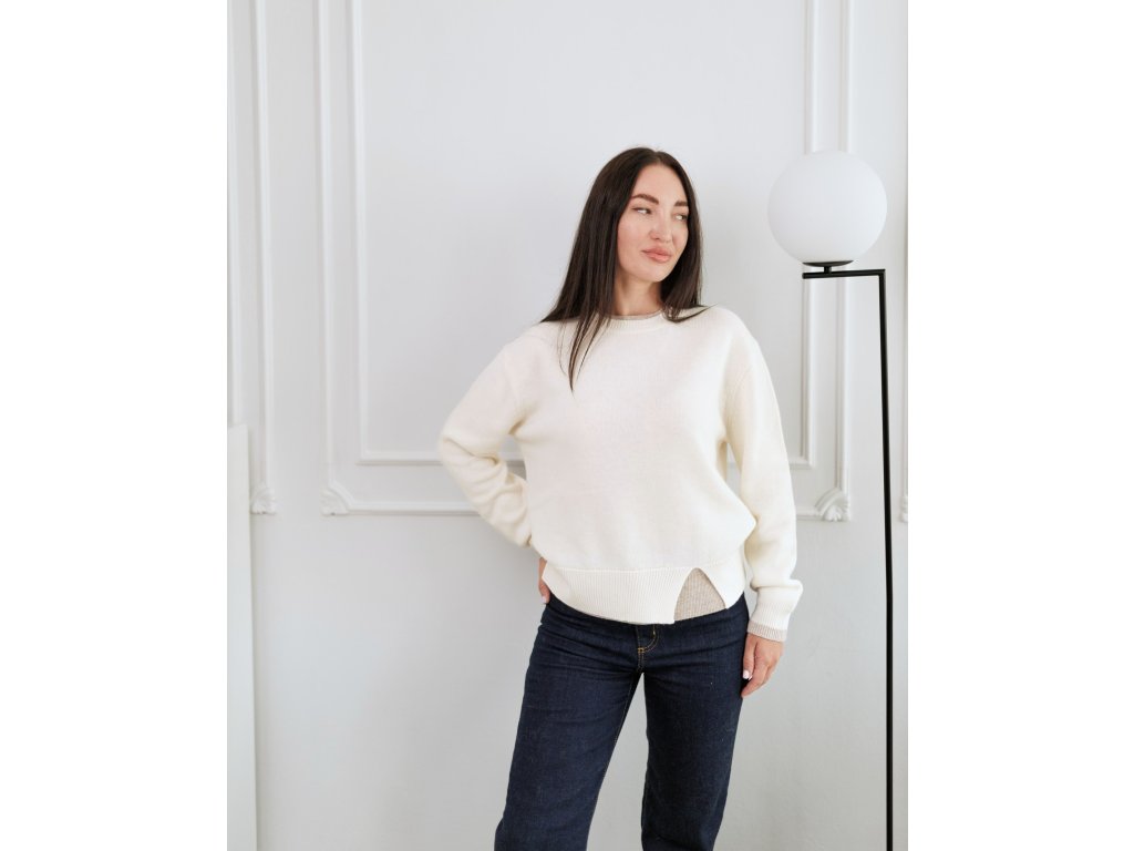 Lehký pletený svetr z čisté vlny s kulatým výstřihem a dlouhými rukávy.