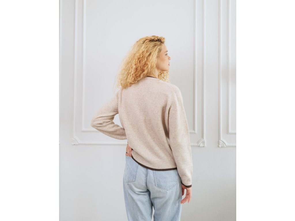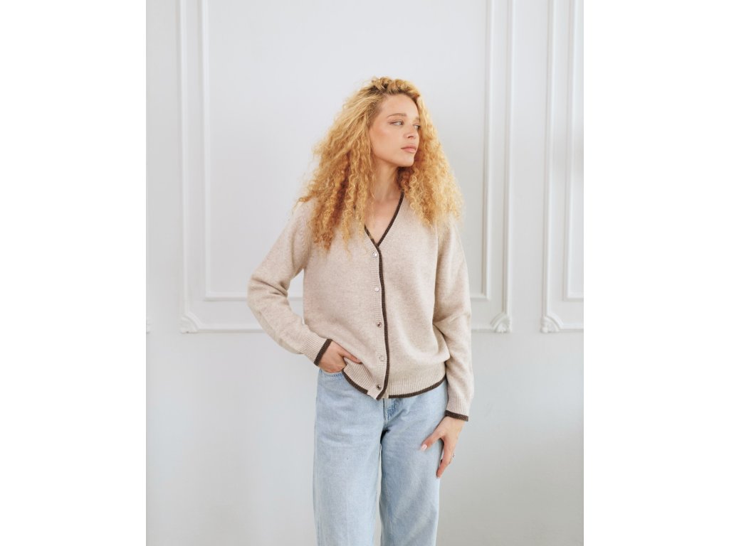 Dámský vlněný kardigan s kontrastním lemováním a knoflíky
