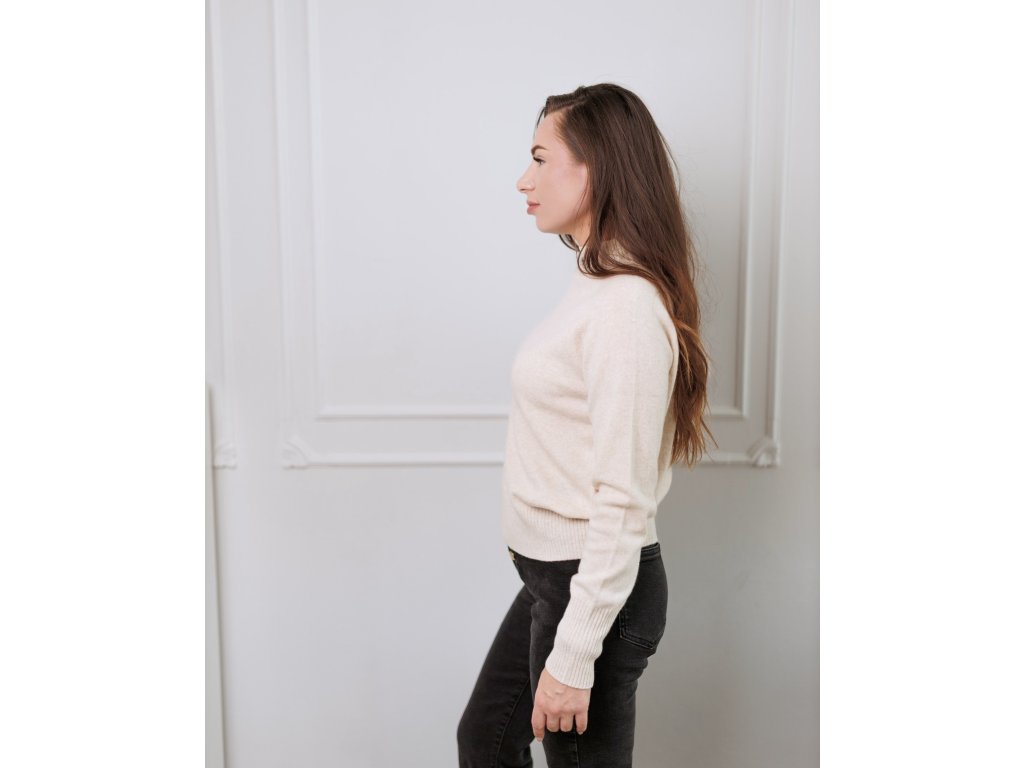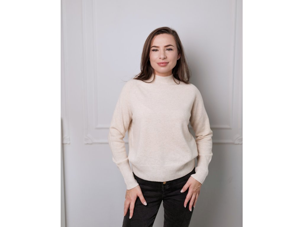 Pletený svetr ze 100% přírodní vlny s kulatým výstřihem a raglánovými rukávy.