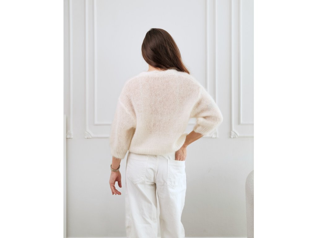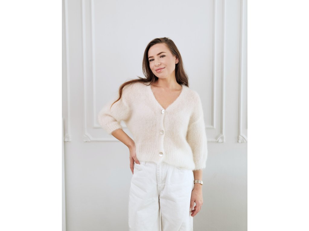 Lehký a měkký kardigan z kid mohéru s nadýchanou texturou a elegantním výstřihem do V.