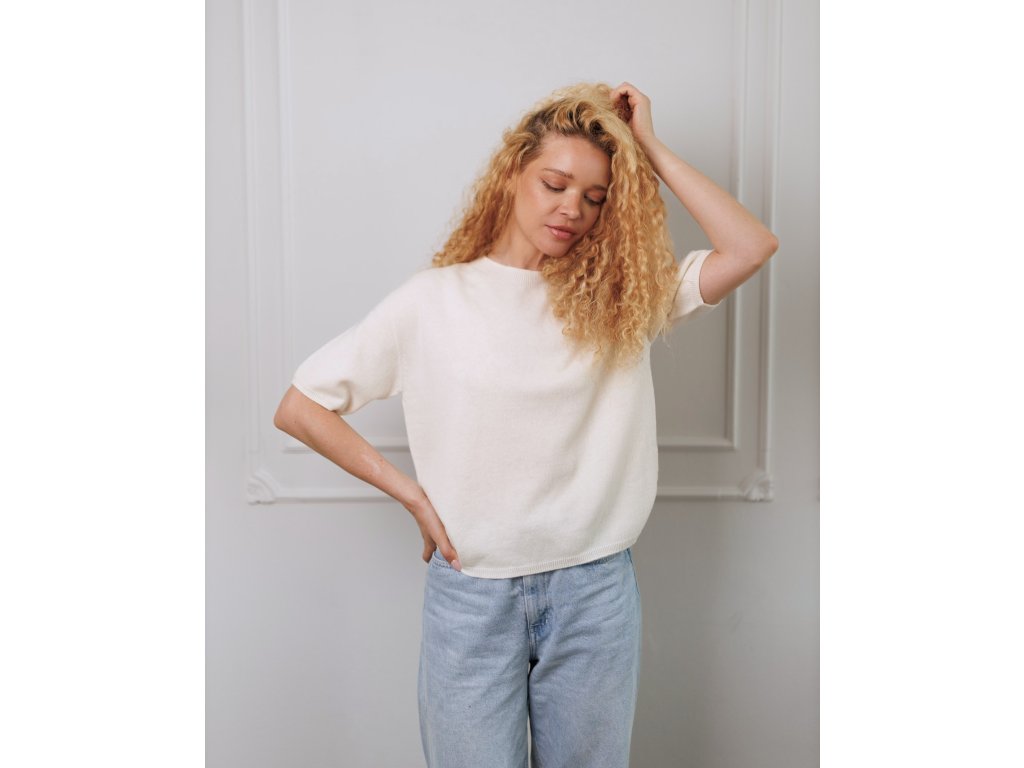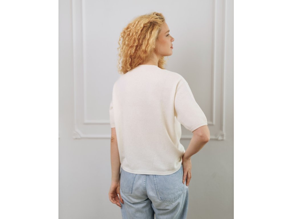 Lehké dámské tričko z 100% vlny s krátkým rukávem a jemně zvýšeným kulatým výstřihem.